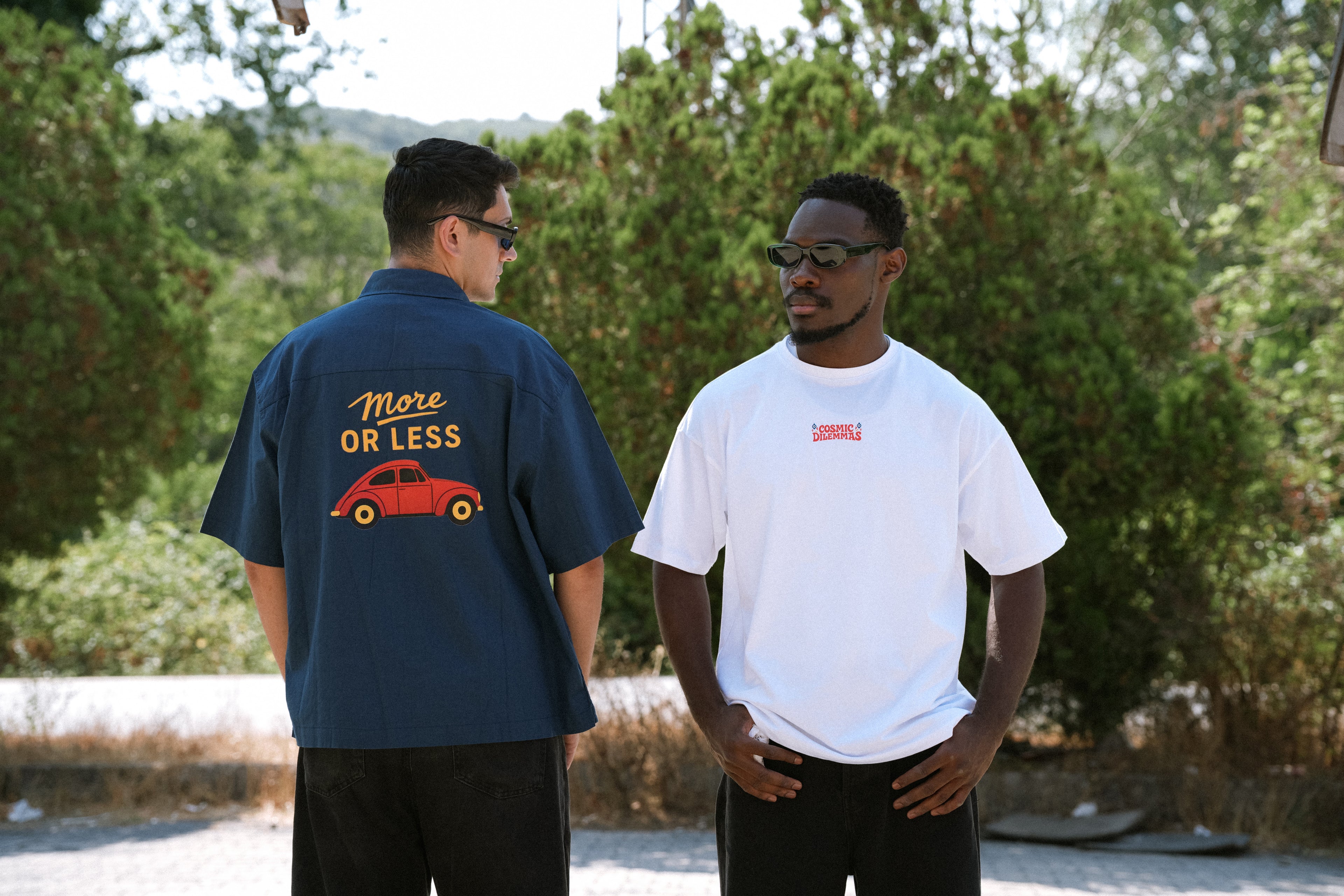Baskılı Oversize Kısa Kollu Lacivert Unisex Gömlek