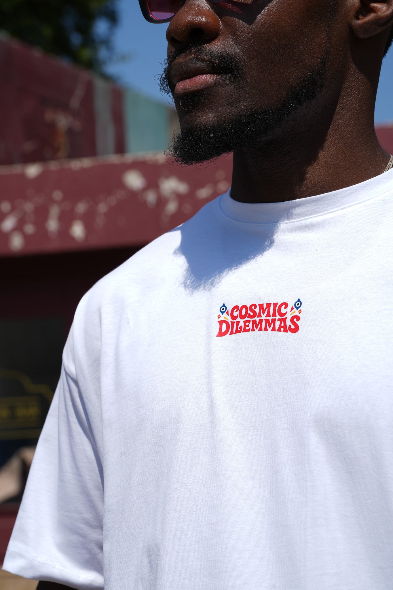 Baskılı Bisiklet Yaka Kısa Kollu Beyaz Unisex Tişört